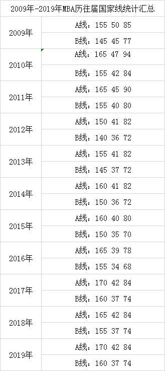 2009年-2019年MBA歷往屆國家線統(tǒng)計匯總