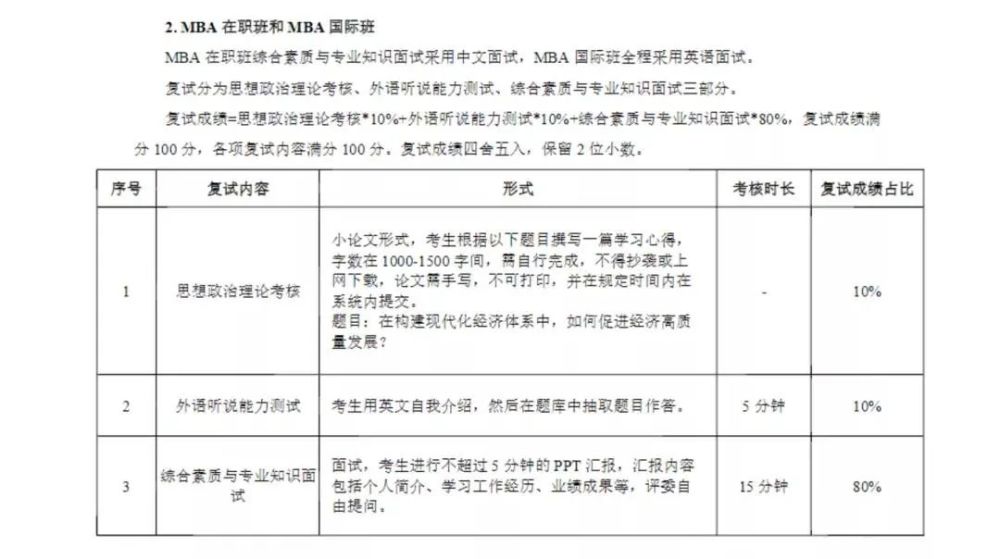 (2)英文自我介紹及英文提問(wèn),都是可以提前準(zhǔn)備好的,而且英語(yǔ)口語(yǔ)的提問(wèn)一般是常見(jiàn)問(wèn)題并伴有特定的回答邏輯,同學(xué)們不必過(guò)于恐慌,只要不是全英文MBA項(xiàng)目,一般非全日制MBA項(xiàng)目對(duì)英語(yǔ)要求還是比較低的。