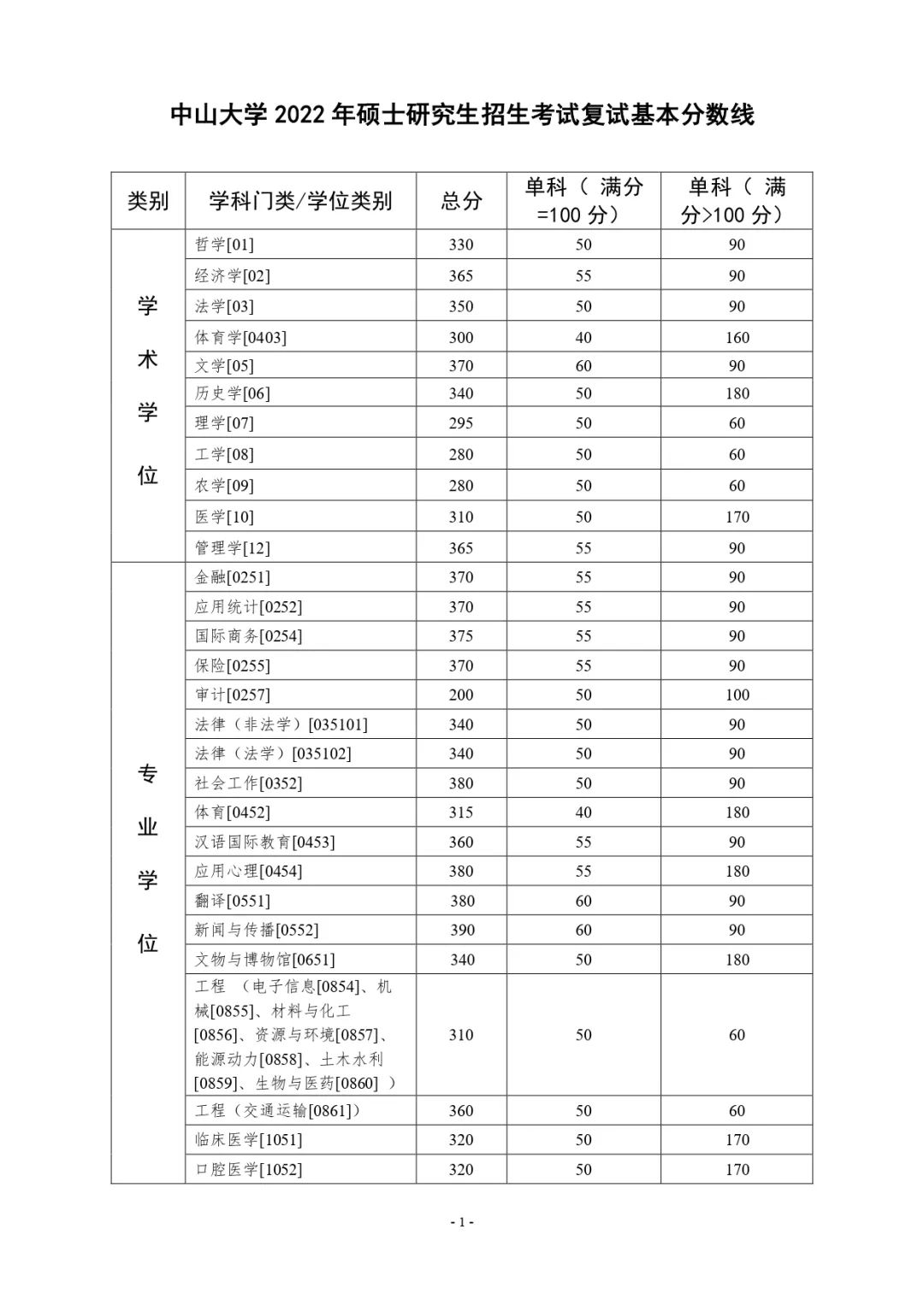 2022年中山大學(xué)研究生復(fù)試基本分?jǐn)?shù)線院校動態(tài)