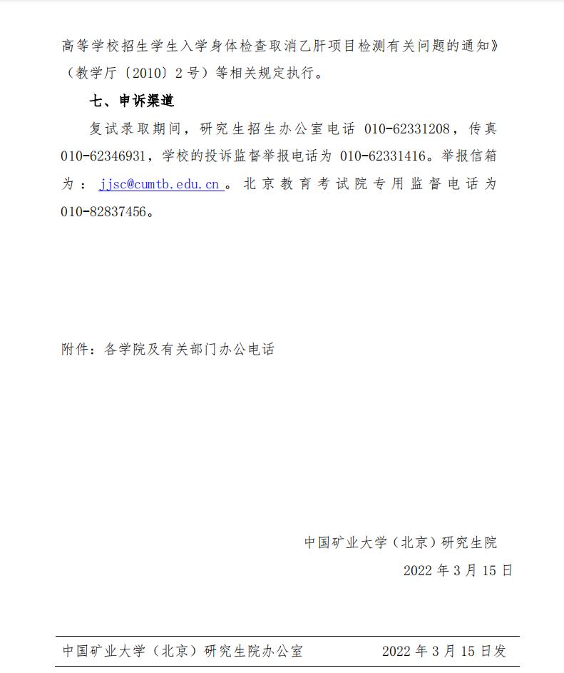 2022年中國礦大(北京)研究生復(fù)試方案院校動態(tài)