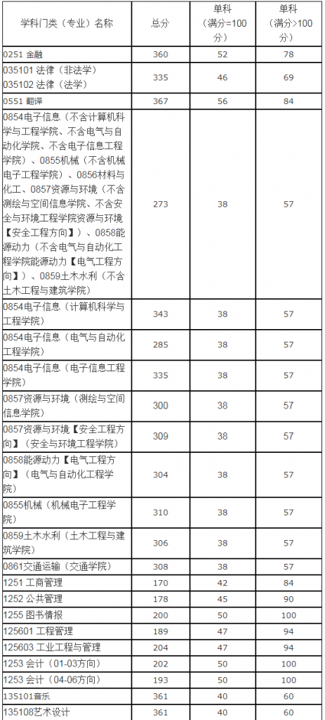 - 重慶大學(xué)2018年碩士研究生招生考試初試合格基本分數(shù)線